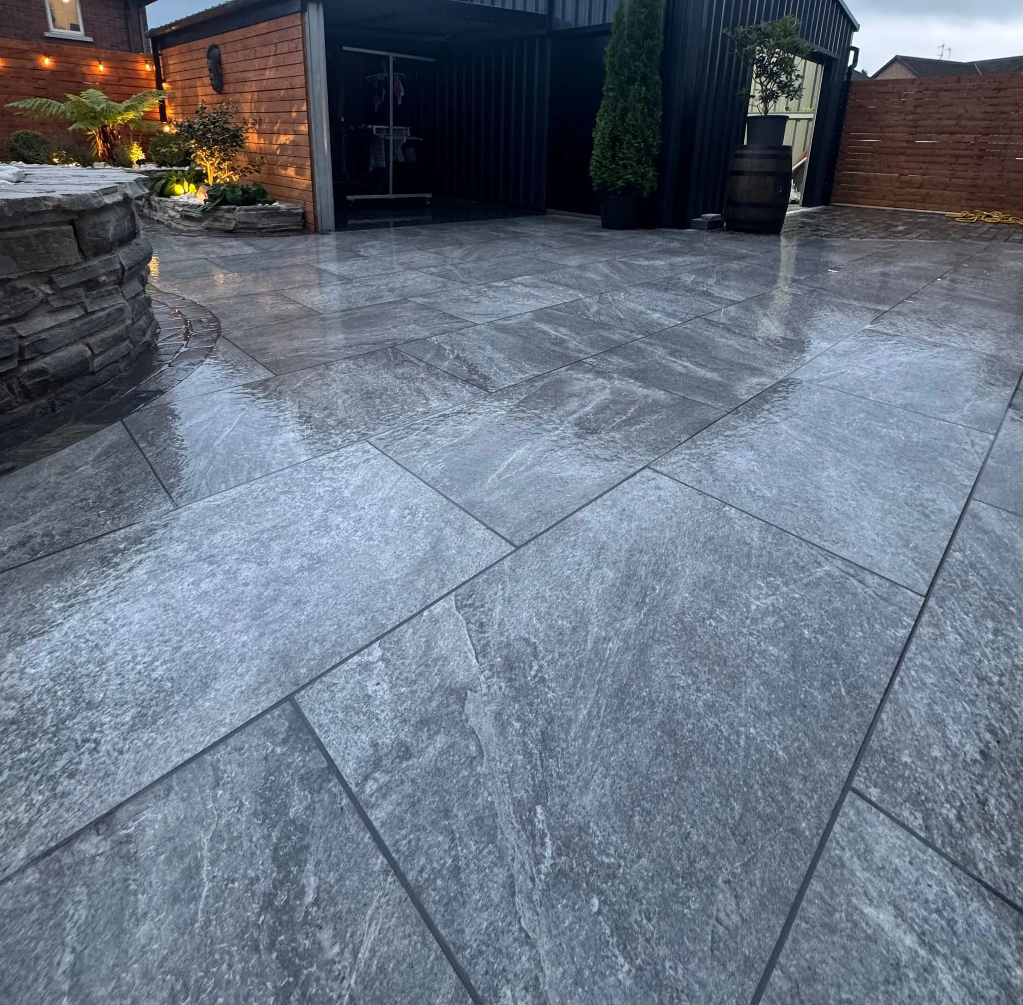 Porcelain Paving – Sleek, modern, low-maintenance, and available in a variety of colours and finishes.